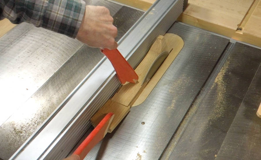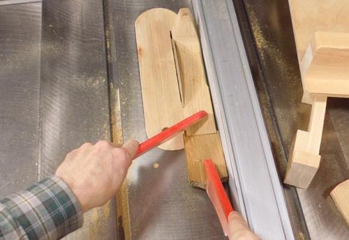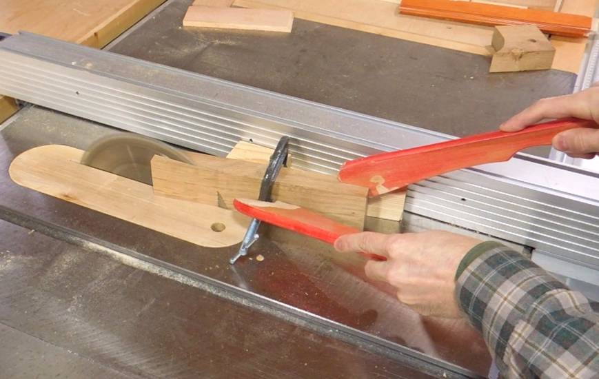 wedge that I'm cutting off might jam itself between the saw blade and my support, so I changed