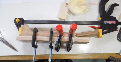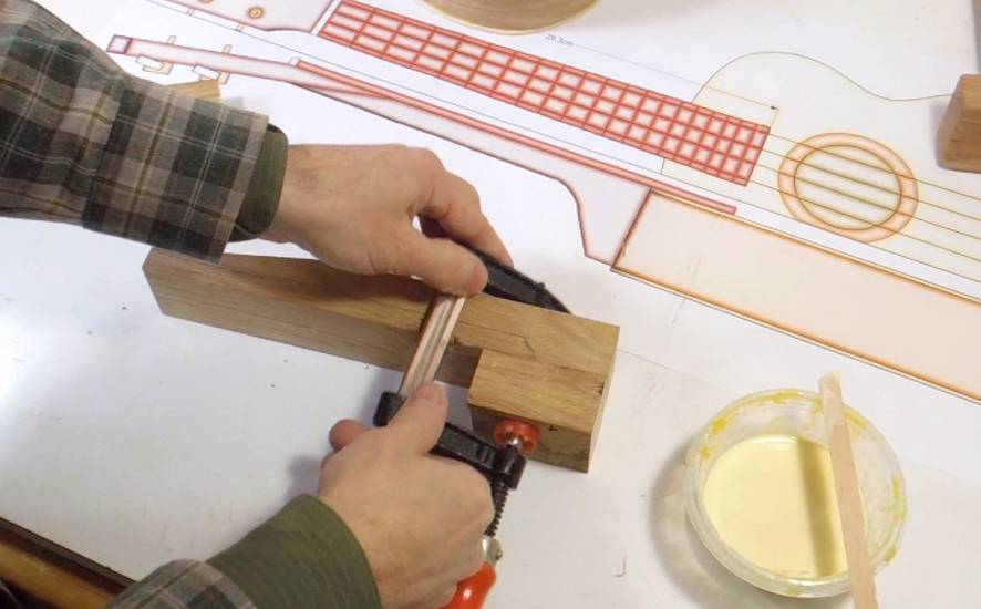 Next, gluing the "heel block" onto the neck for where it attaches to the ukulele.