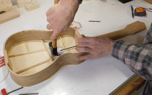 Getting the nuts on the hanger bolts will be tricky once the back of the ukulele