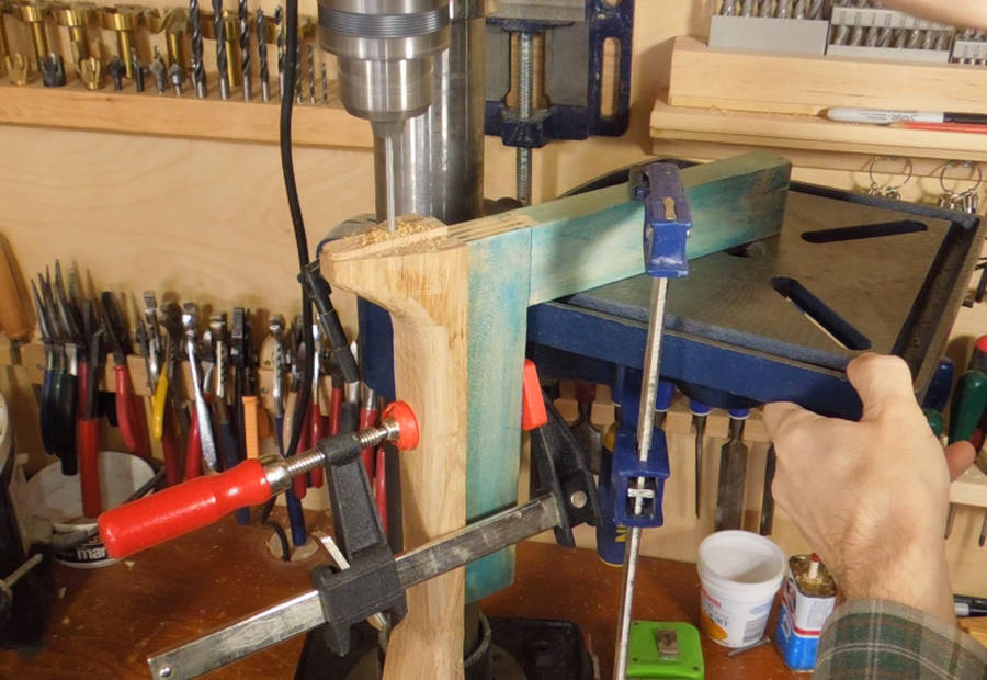 So I clamped it against a large piece of wood. I clamped a small block of wood