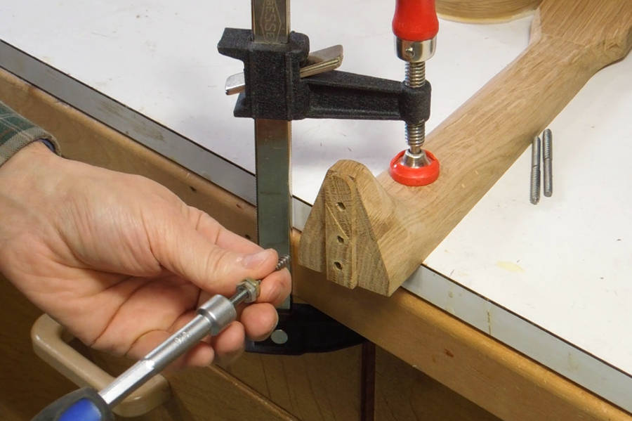 To avoid splitting the neck with the hanger bolts, I made a sort of wood screw