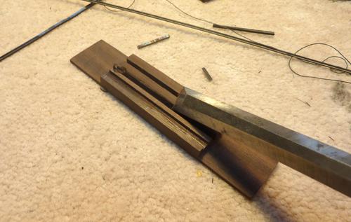 of rosewood on which I mark out the main slots to be cut. I need a slot to