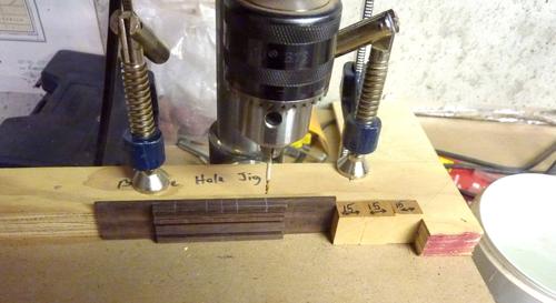 jig I clamp to my drill press. The strings are spaced 15 mm apart at the