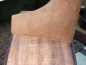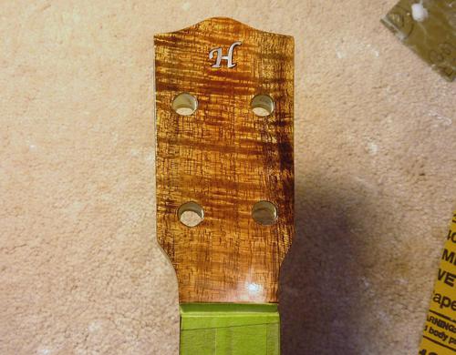 Gluing a koa veneer to the front of the head and