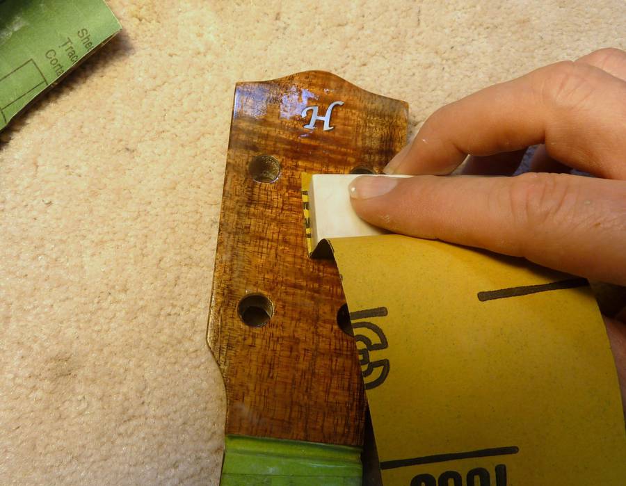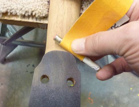 Here I am "flossing" the heel against the body with sand paper. In this manner the