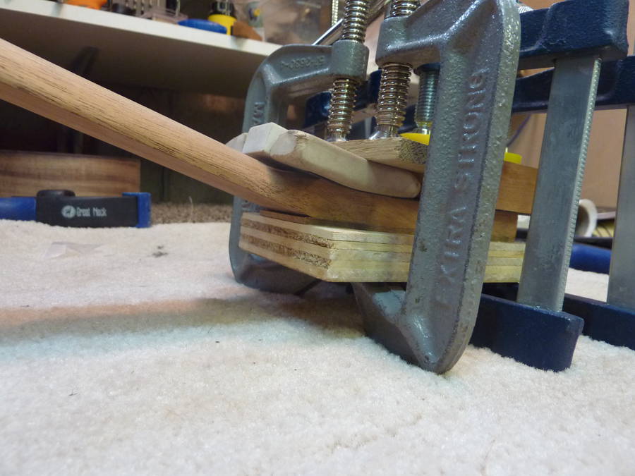 neck. I stuck a 2 mm thick piece of wood under the head end of the neck
