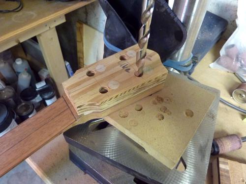 sided tape and drill the holes for the tuning machines.