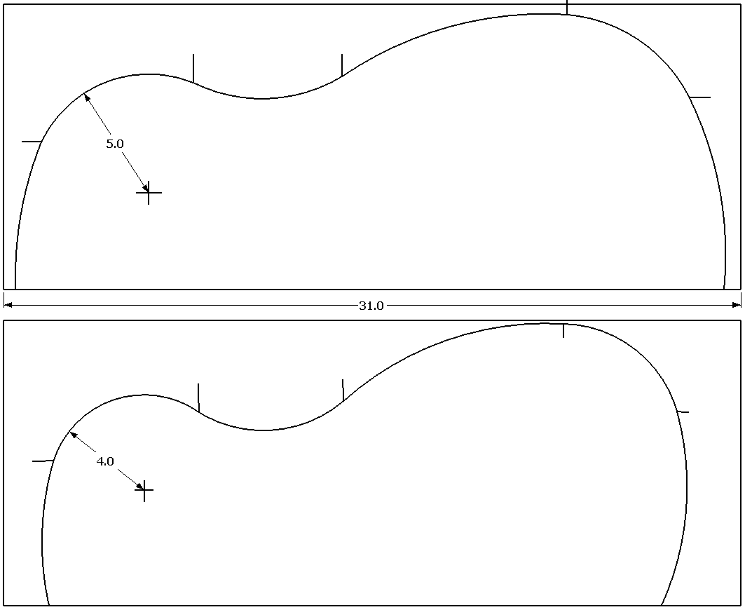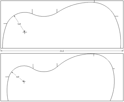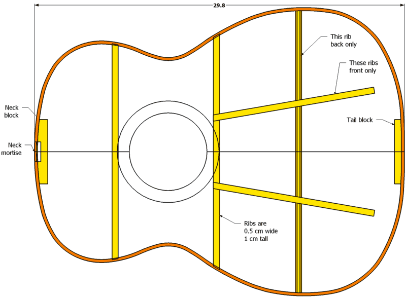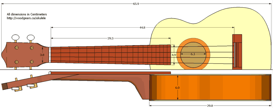 All dimensions are in centimeters. Frets are NOT precisely positioned. Please see here for how to position the frets.