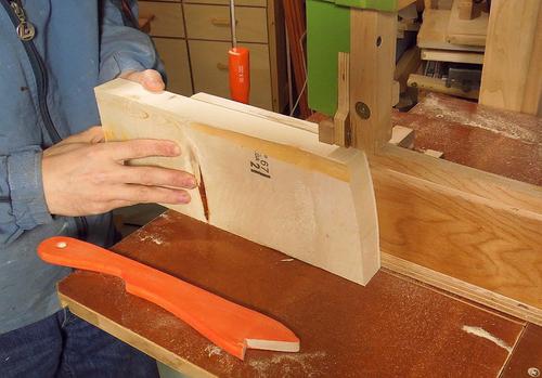 Resawing the wood to form the back of the ukulele. The back is usually made