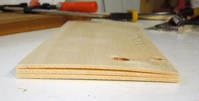 The first layer I cut had quite a bow to it. The kiln drying process often leaves stresses in the wood. Fortunately, the next two layers were much flatter, so I used those.