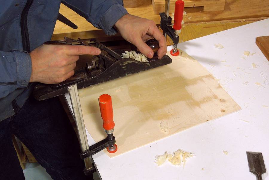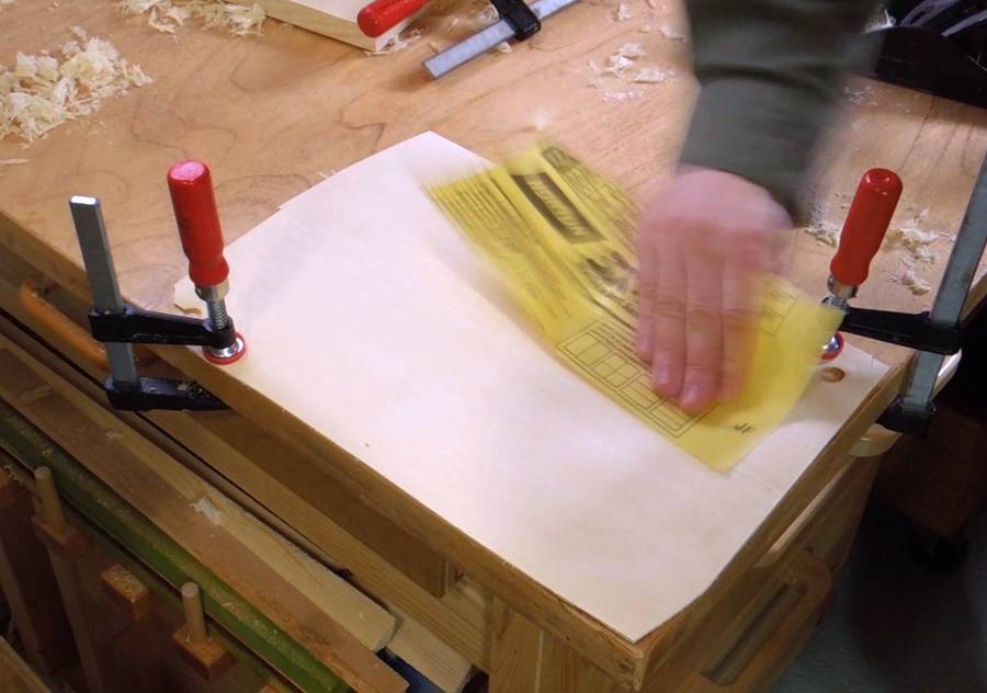 After gluing, I used a cabinet scraper to smooth it out and remove some of the saw marks.