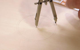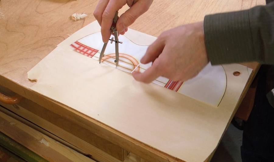 With the ukulele body center line aligned with the glue line on the sound board, I