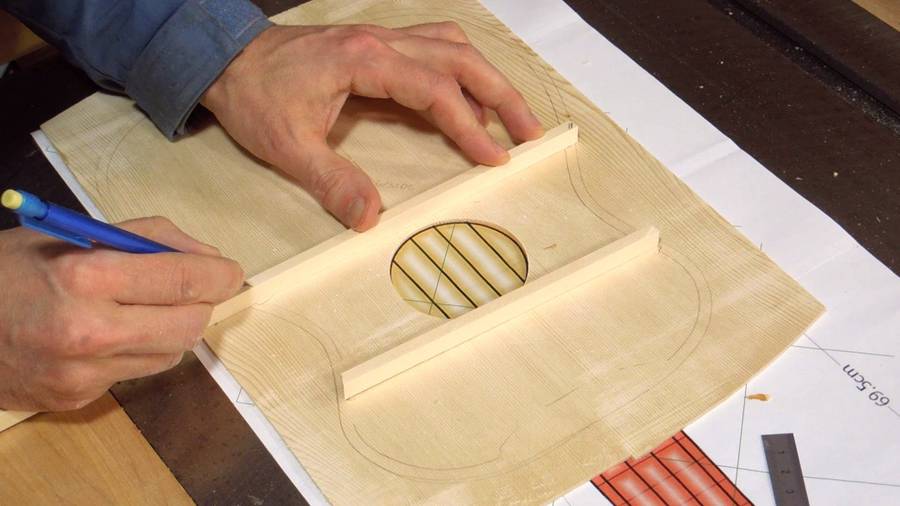 sound board. I made a mark 10 cm from the edge of the body on the printout, then aligned