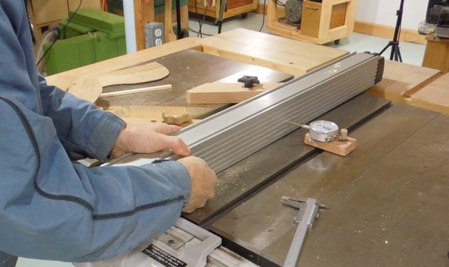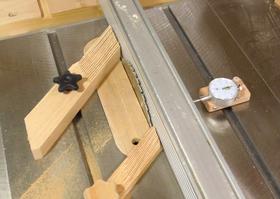 On checking the thickness, I adjust the fence, using a dial indicator to