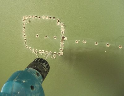 holes, I used a utility knife to chip away the bits of plaster between the holes.