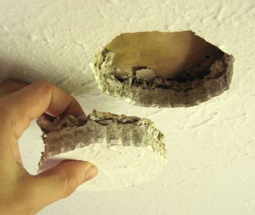 The piece of ceiling came out fairly nicely, and only minor chipping was needed