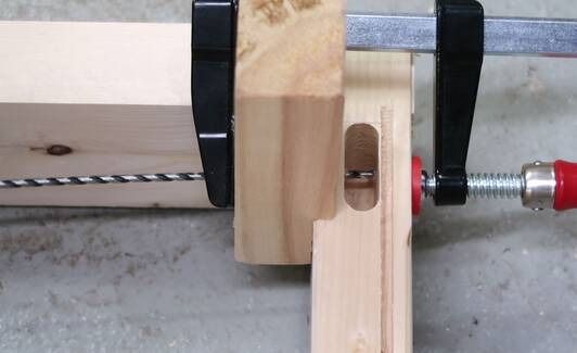 I modified my wooden drill guide for drilling the holes in the tenons.