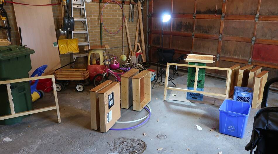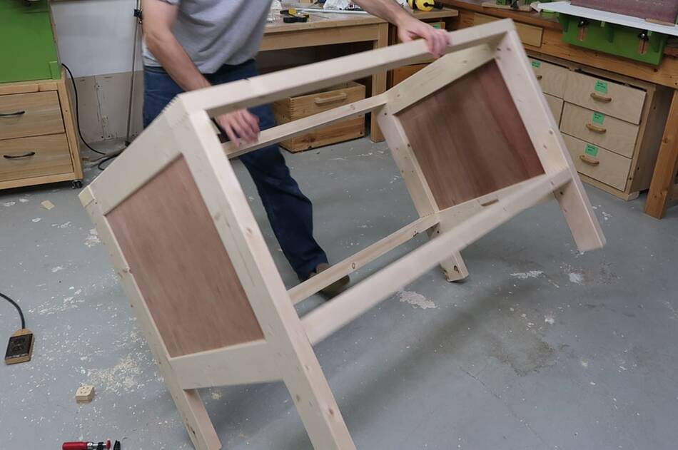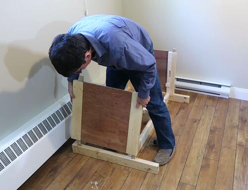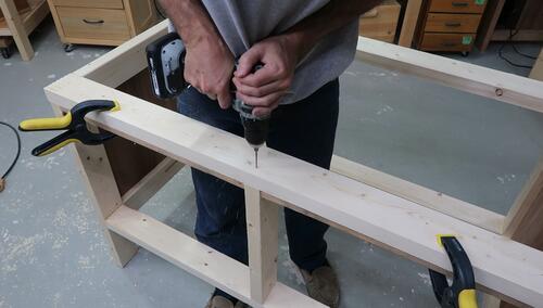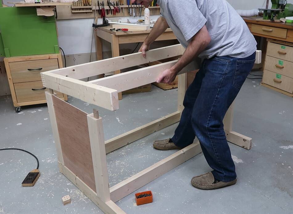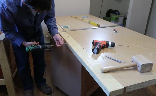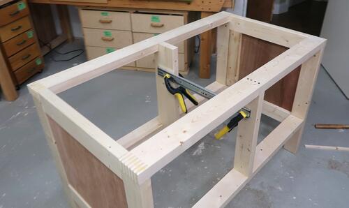 Assembling the workbench in the new spot. The "disassemble-able" feature was handy
