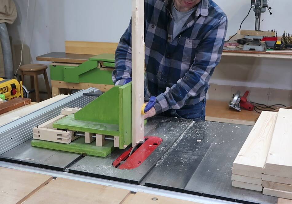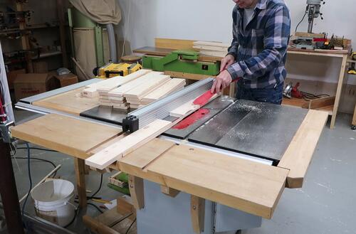 Then cutting them to length using a table saw sled. With the sled, I can also be