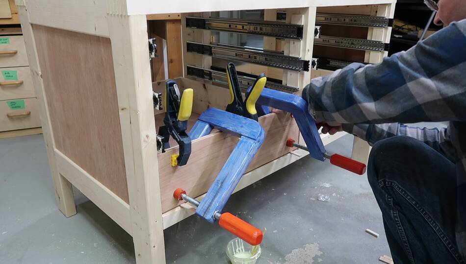 when attaching the bottoms to make sure the drawers are square.