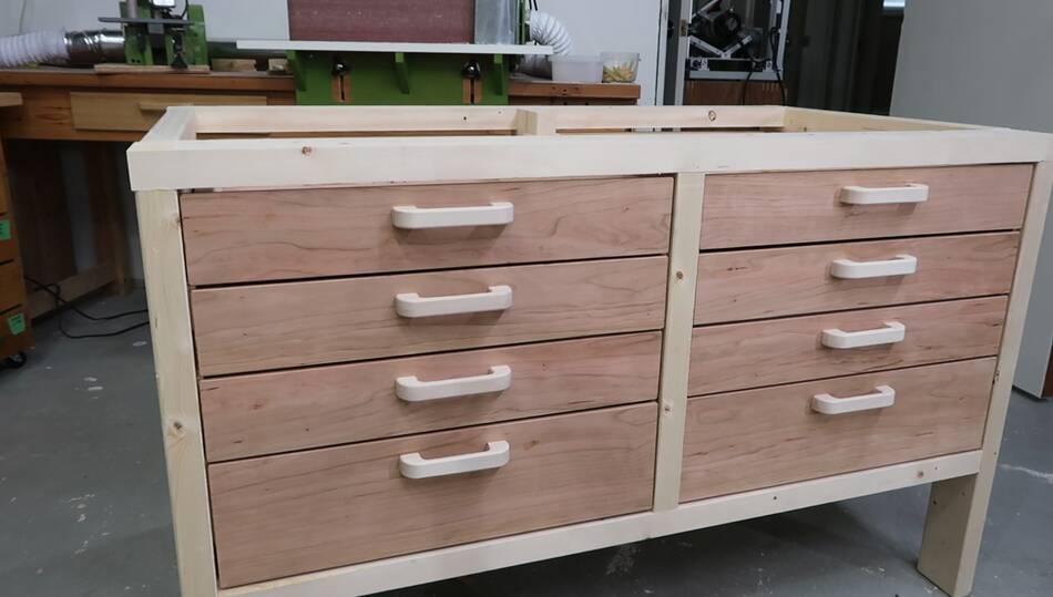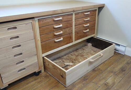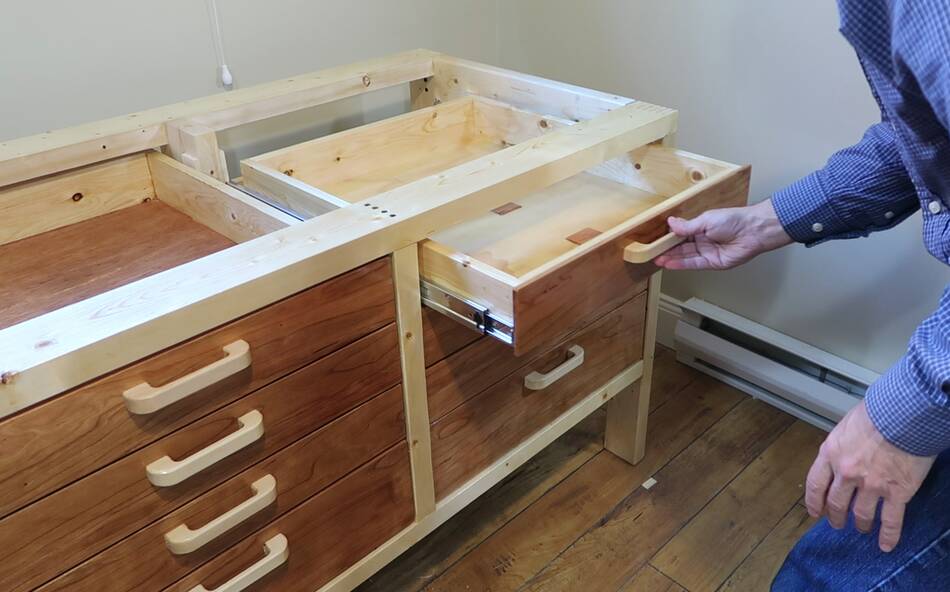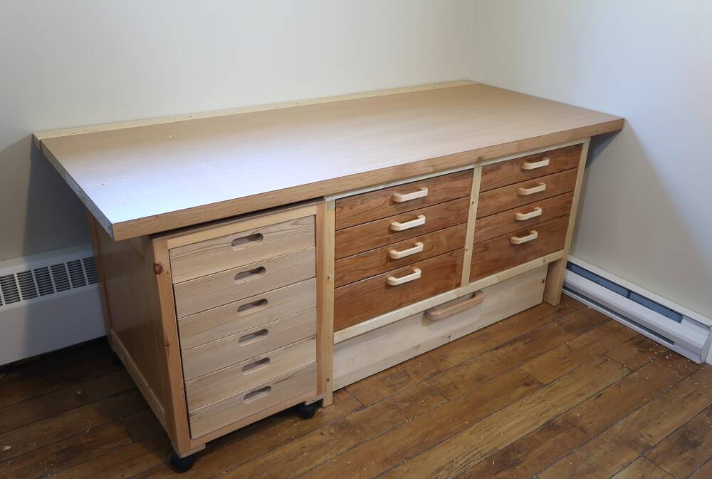drawers tool stand and underneath is a big under-workbench drawer