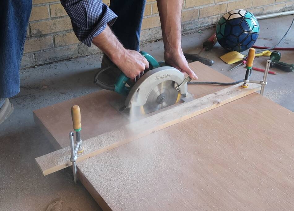 scoring cut with the circular saw going backwards, then cutting full depth forward. This