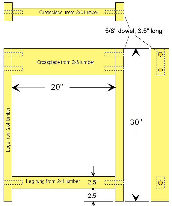 Cut two pieces of 2x4 to 20" length and rip to 2.5" width, and assemble as shown.