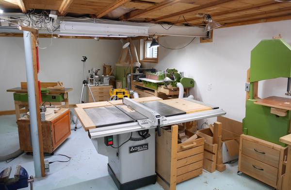 Having my most frequently used tools - table saw, bandsaw, drill press, workbenches and tool wall - close together made it really efficient for most of my smaller tinkering projects.