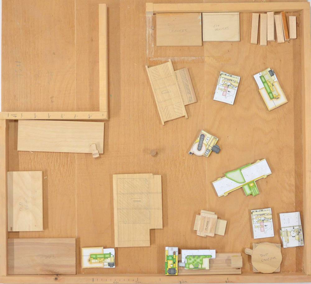 Here's a floor plan of my workshop. You can faintly see a meter scale along