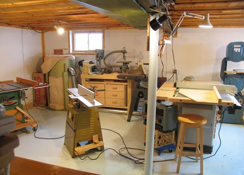 In 2007, I moved to a different city. So, I needed to set up a new workshop at my new place. My old workshop was in a garage, but this time, I put the workshop in the basement. Initially, I figured this would be an interim measure until I could build a building for the workshop. But with the harsher Ottawa climate, I realized that having a basement workshop does have the advantage that I don't have to heat it up before going in there. This means that it's worth going in there for just 20 minutes of tinkering here and there, even in the winter.