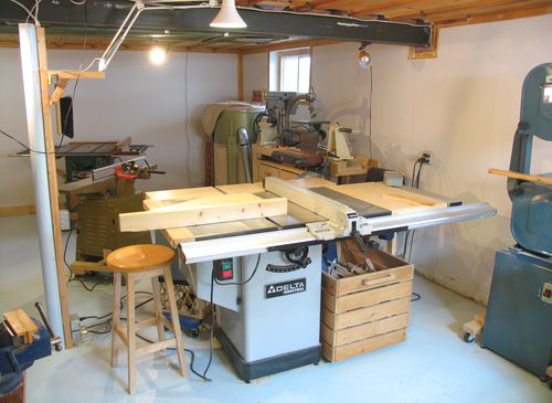 Facing the workbenches is my Delta hybrid table saw