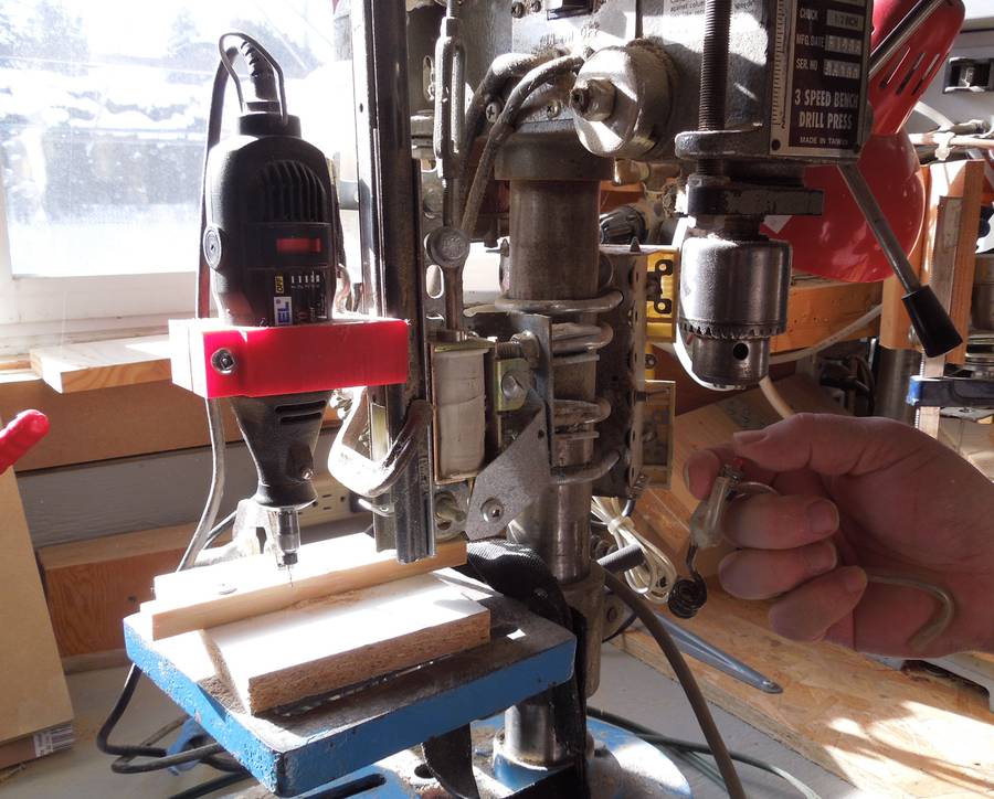 This setup actually only uses the table of the drill press, so this drill press functions as a normal when the table isn't swung over to the Dremel tool.