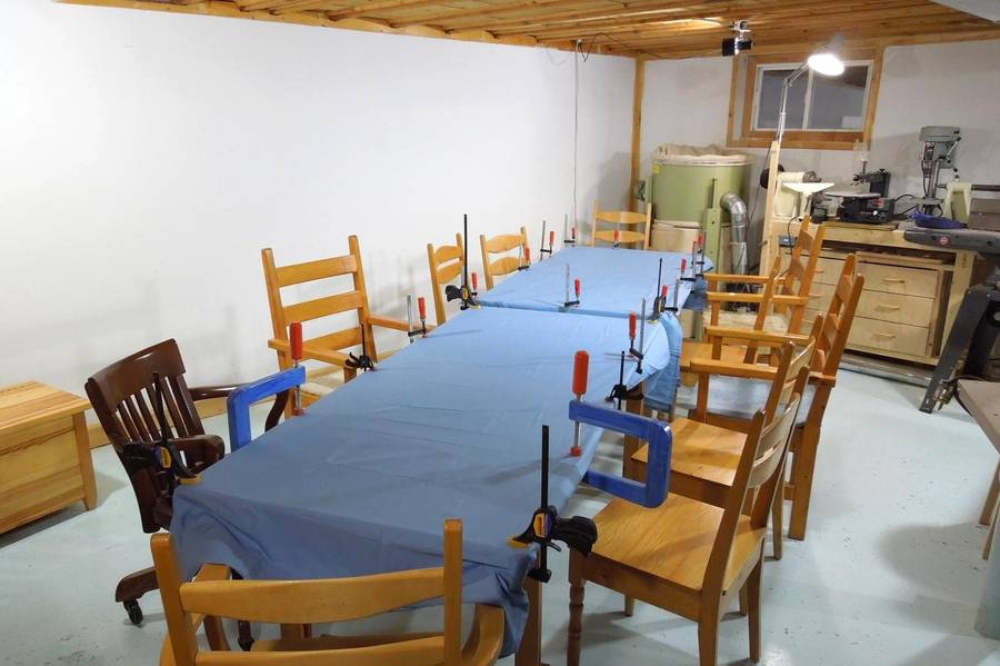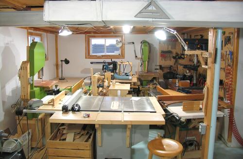 With most of my machines on wheels, I managed to push two bandsaws, a 6" and a 12" jointer, the horizontal boring machine, slot mortiser, thickness planer, pantorouter, and radial arm saw all into the space between the table saw and workbenches. I then pushed my other table saw as far into that corner as it would go as well. It was like one of those puzzle games where you have to shift some blocks through a small opening.