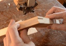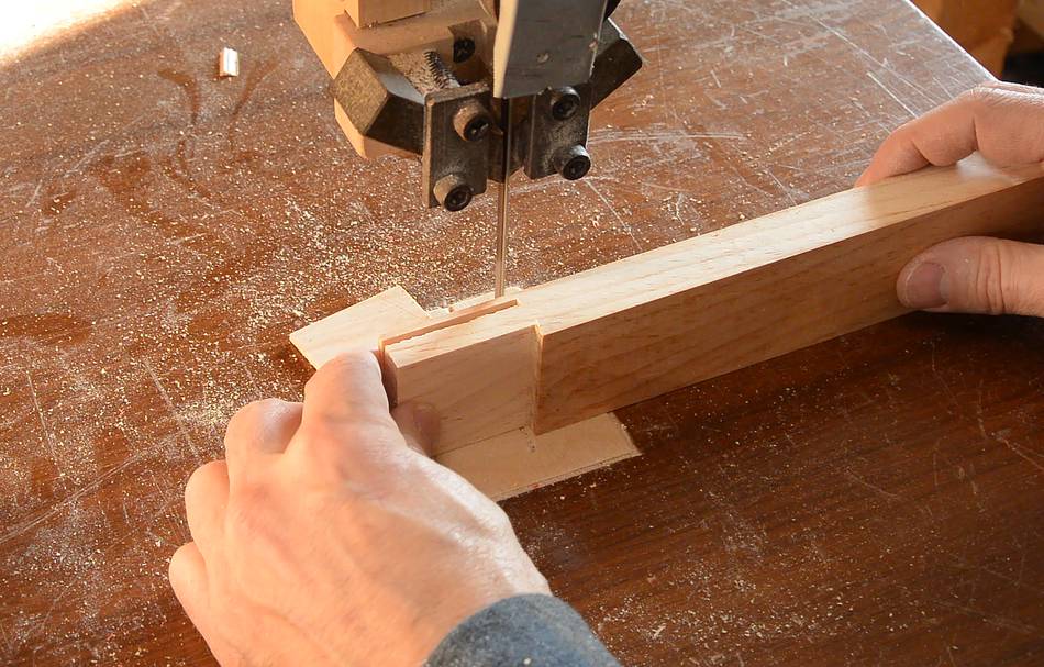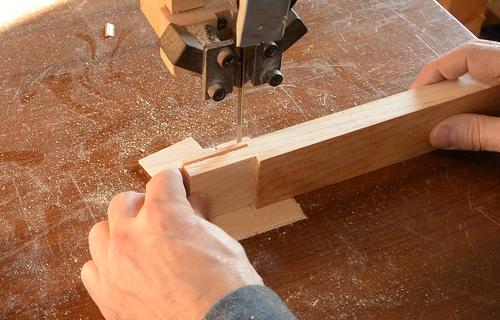 I cut the shoulders of the joints on the bandsaw, here a test fit