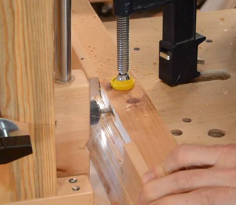 Also note the block of wood clamped to the workpiece at left in this