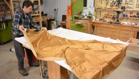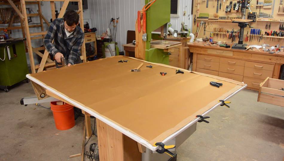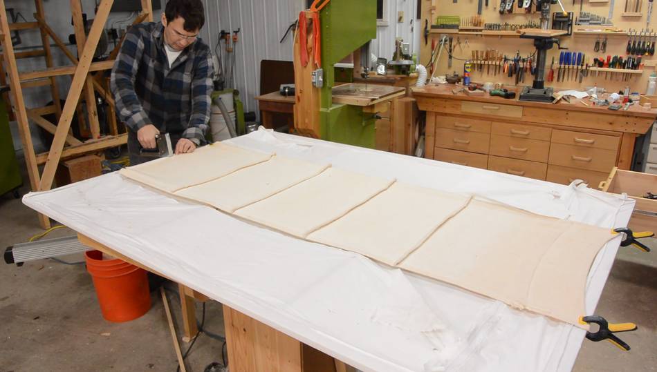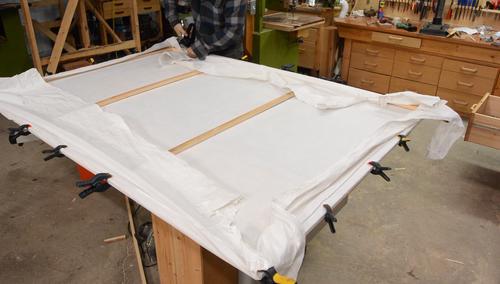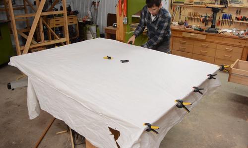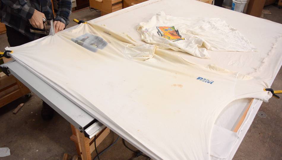 Stretching some fabric over the frame. This is some very cheap