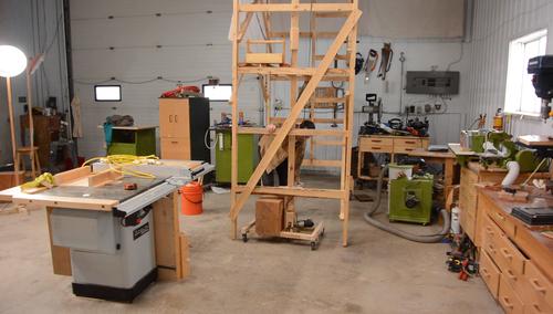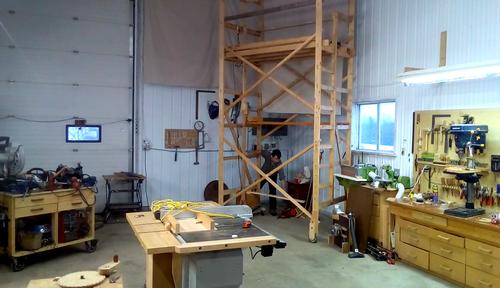 particle board top). I also parked the scaffold back in the corner