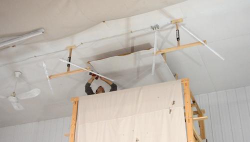 move the scaffold out of the way of the light fixtures and ceiling fans for